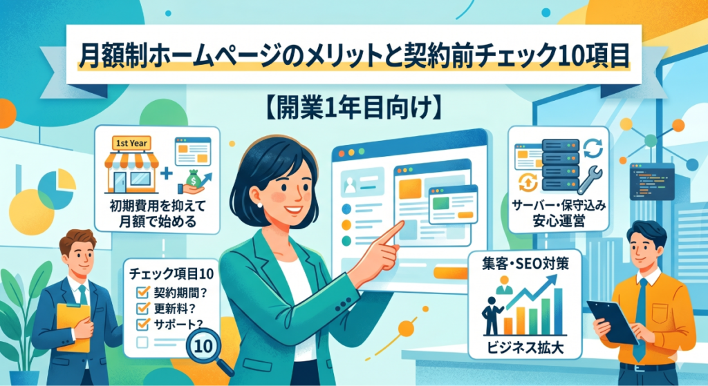 この記事では、開業1年目の経営者に向けて、月額制ホームページのメリットと、契約前に必ず確認すべき10項目のチェックリストをお伝えします。