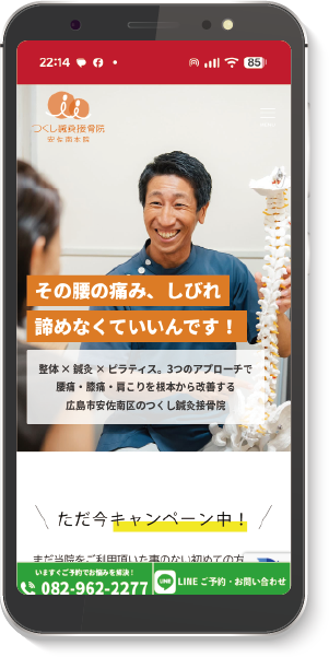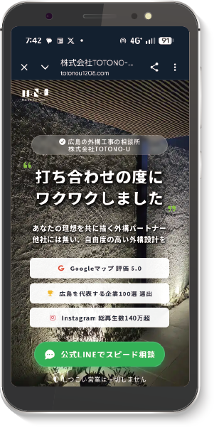 スマートフォンでも気持ちよく使える画面設計。"なんか古いHP"と思わせない、今どきの品質でお届けします。